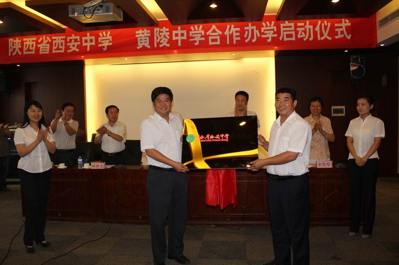 仪式上,黄陵县委常委、副县长姜润虎宣读了陕西省西安中学与黄陵中学合作办学的协议;我校校长张克强与黄陵中学校长蔡永峰共同签署了合作办学协议并为之揭牌。