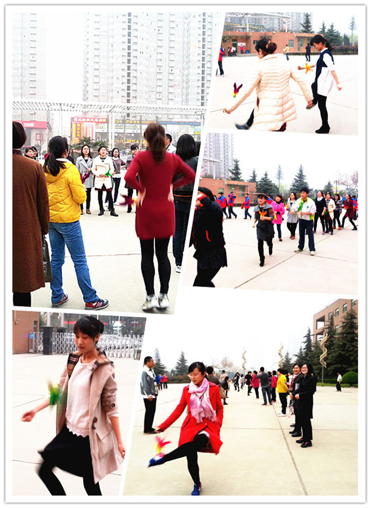 第四,以工会小组为单位,联合各支部,自行策划组织,利用“教职工专属活动课”时间,开展了一次女职工健身活动。各工会组长认真负责,支部书记帮忙,精心策划,每组都有几位乐于奉献的男同志热心服务。高一年级部年轻教师居多,他们热情高涨,分成两组进行跳绳接力、跳绳争霸、大绳“下饺子”等项目PK,好一番热闹;高二年级部53名老师参加,赛前的热身运动很有气势,赛中的热潮一波未平一波又起,最为精彩的是跳大绳“下饺子”,一个个鱼贯而入、身轻如燕、乐此不疲,吸引了樊世杰书记、李文耀副校长、雷琪平副校长、陈玉红主席、李亦工主任等也前来参加;行政小组决出“跳绳王”李艺一分钟跳181下,“毽子王”王小玲一分钟80下,让大家称赞;高三年级部和经开一中的老师们随后也会抽时间组织开展此项活动。