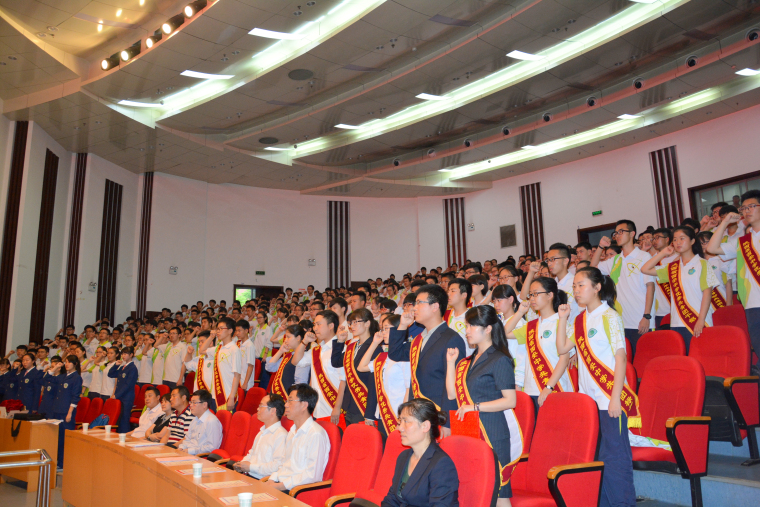 薛锋副校长宣布新团员入团批复,雷琪平副校长带领新团员宣誓,老团员同时重温誓词,表彰大会在新老团员庄严的宣誓中落下了帷幕。