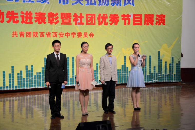 樊世杰书记在致辞中说:过去的一年,在学校党政的坚强领导下,我校共青团工作得到了较好发展,我校的“青年马克思主义者培养工程”获团中央重点工作创新试点项目,我校开展的“团员,归队!”系列活动和“青春红白蓝”活动受到《陕西日报》和《人民日报》的报道。我校学生参加浙江卫视第二季《中华好故事》勇夺团体和个人双冠军。同时,国旗护卫、科技创新、社团建设等工作也开展的有声有色。