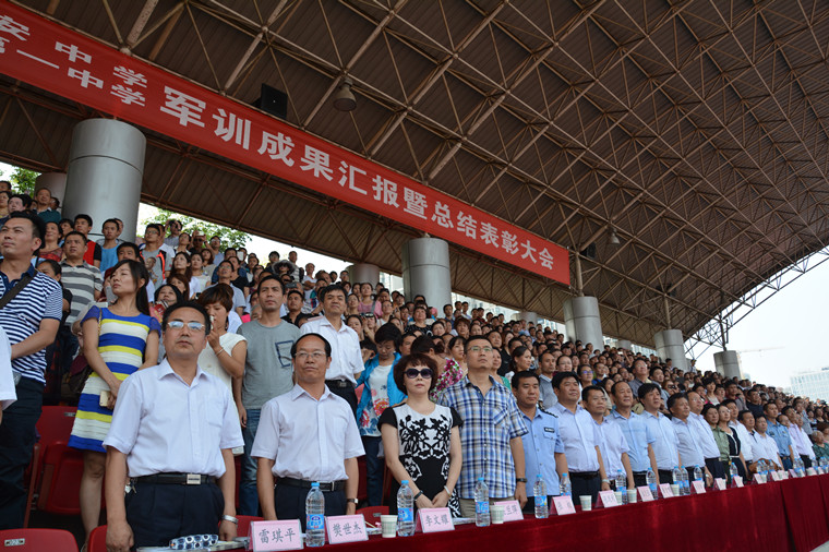 伴随着庄严的国歌声与校歌声,汇报表演正式开始。雷琪平副校长做军训小结。在讲话中,雷校长高度肯定了同学们在军训中斗志昂扬,严肃有序的良好风采,对同学们不怕艰苦,藐视困难,超越自我的精神给予了高度评价。他也向各位同学提出了目标与希望。希望他们在新的学校,新的环境收获新的成功,实现新的跨越。