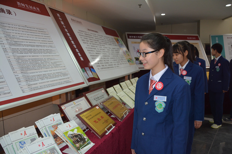 作为西安中学一百一十年校庆系列活动的重头戏之一,西中新十年教育教学成果展10月18日早晨八点在艺术中心一楼大厅隆重揭幕了。校长张克强、党委书记樊世杰、副校长李文耀、薛锋、雷琪平,学校部分中层、教师和学生60多人参加西中新十年教育教学成果展揭幕仪式。
