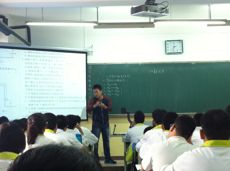 马老师首先带领学生认识了功与能的区别与联系,又带领学生复习了高中阶段重要的功能关系,思路开阔,很好的引起了学生的共鸣。在功能关系的整理复习中又能针对学生理解的缺陷以及易错点进行独到的分析讲解,令人印象深刻,对后期的继续学习有很好的提纲挈领的作用。在之后的教学中,马老师又以例题透彻讲解各种能量关系,尤以动能定理和机械能守恒定律为主,帮助学生理解重点、突破难点。习题的设置也是由简入繁、层层递进、逐渐丰富,帮助学生整理知识框架,给学生以整体的感受。