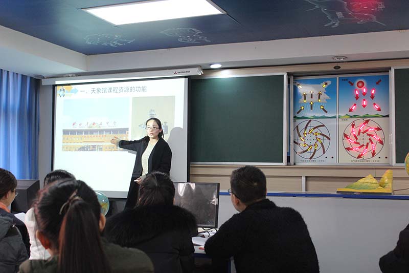 接着在刘卫老师主持下,由地理组三位老师分别对我校现有的地理场馆教学资源进行了介绍:陈曦老师从天象馆课程功能、课程意义及课程体系进行了介绍;贺辉老师对天文馆的硬件设施及天文望远镜操作,已开发出的6课时成熟的课程资源,已取得的成果等方面进行了介绍;邓先武老师对地理教室从基本仪器与模型、地理教室对学生知识学习、学科素养培养的重要意义,以及课程资源等方面进行了展示与介绍。