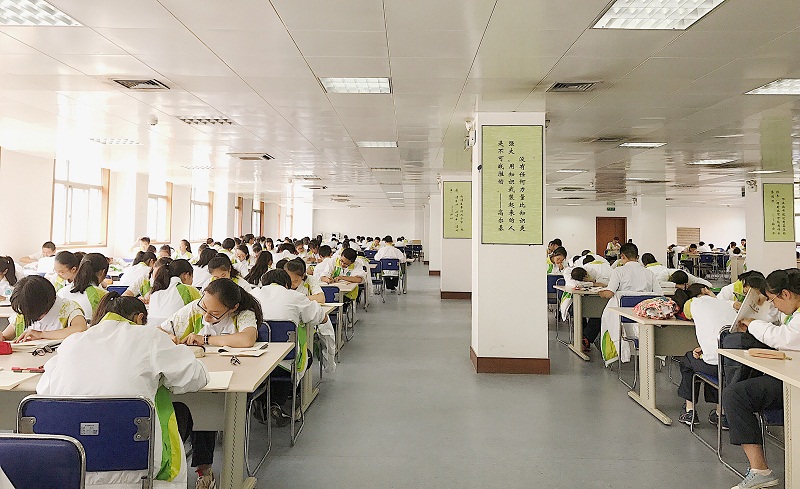 能够容纳三百余人的自修室宽敞明亮,桌椅整齐,光线充足,通风良好,为同学们营造了舒适整洁的学习环境。同时,教学处也制定了严格的管理制度,确保井然有序。半走读学生需凭走读卡,在规定时间进入自修室,并以班级为单位,按规定位置就坐,并由图书馆值班老师专人负责维持秩序、保障安全。