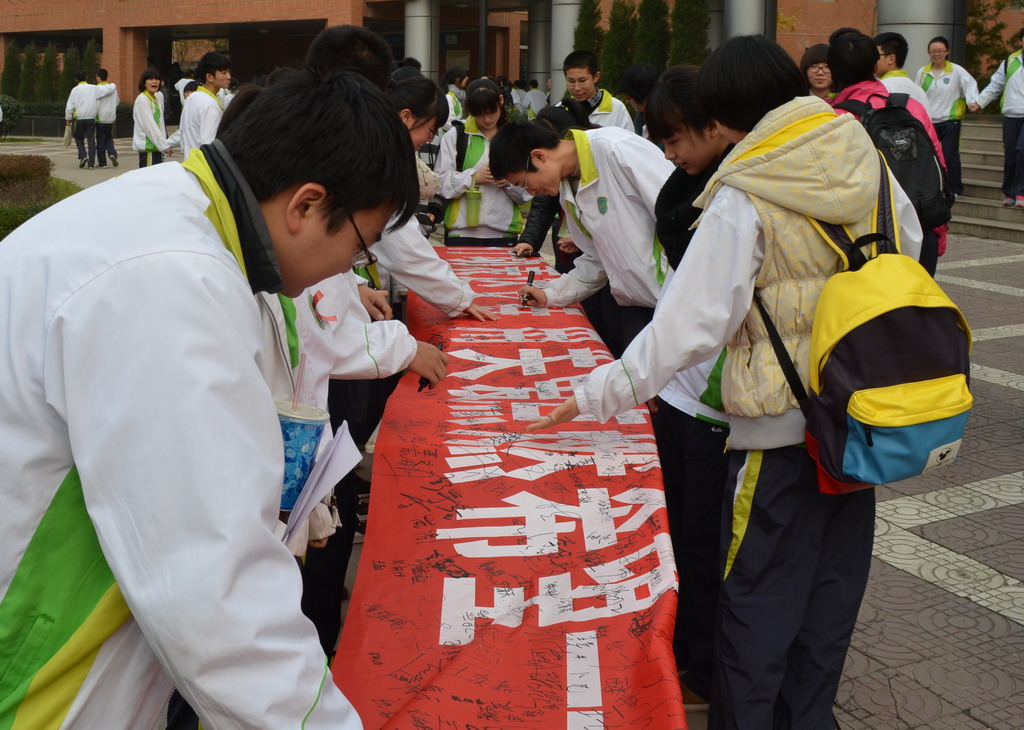 活动中,学生们纷纷在“以行动表达支持,用关爱点燃希望——第24个世界艾滋病日宣传活动”的横幅上郑重签下自己的姓名,承诺“拒绝歧视,拒绝冷漠,真诚地尊重和关爱受伤的生命”,并在胸前佩戴学生会制作的红丝带,以此表达自己对于艾滋病患者、感染者、照顾者的接纳与关怀,以及对艾滋病卫生教育、治疗方法和疾病研究的支持。由学宣部制作的手绘艾滋病知识宣传海报和题为《关心·希望·支持》的宣传单起到了良好的宣传效果。在整个活动过程中,校园广播同时播放提前录制的“爱心红丝带”专题节目。校园电视台的学生记者全程跟踪报道活动盛况。赵文宏书记、李文耀副校长及许多老师都在横幅上签名,以此表达对该项活动的支持。