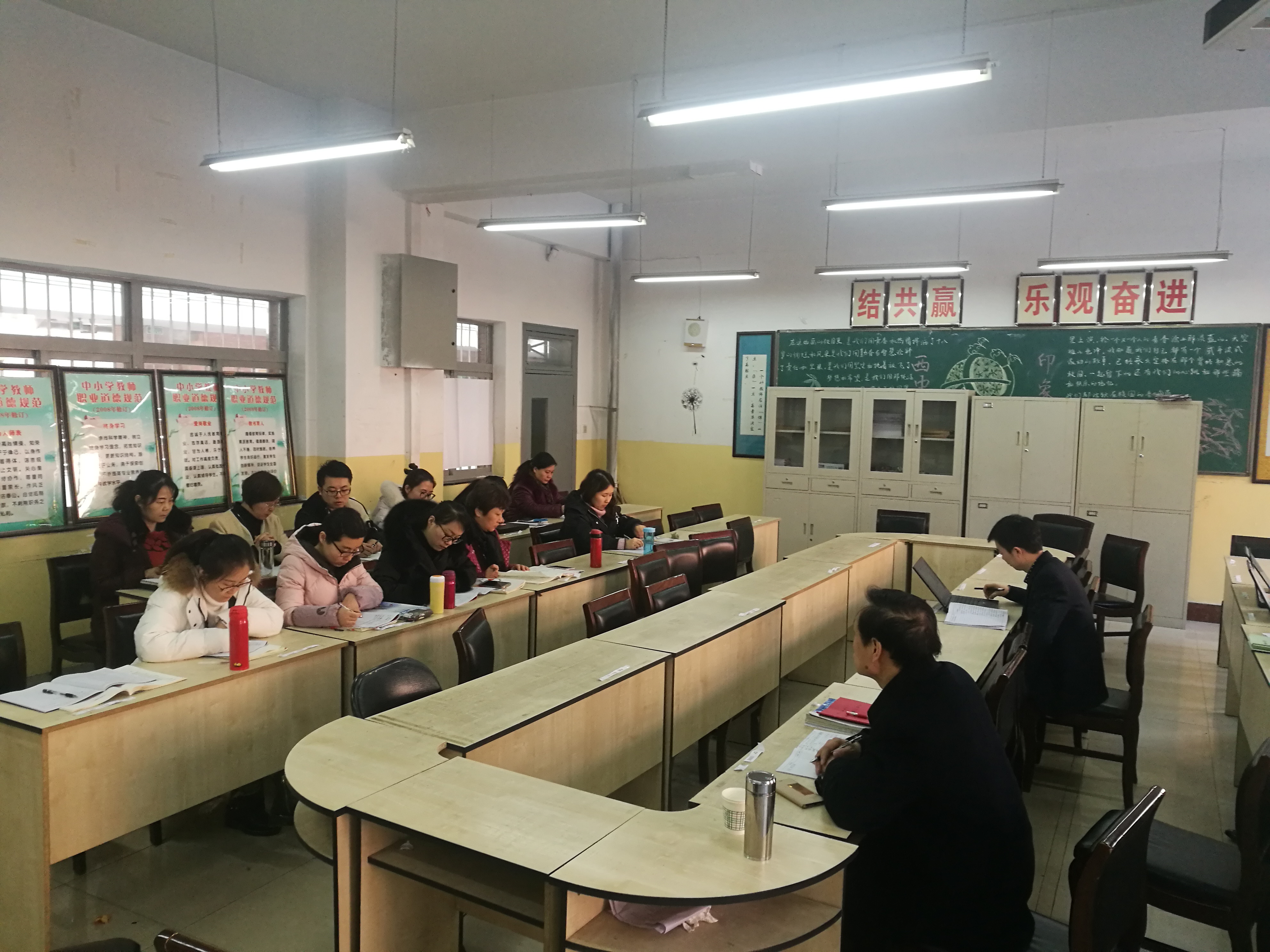 2018年1月9日下午第1节,廖超平老师在高一(16)班为化学学科组老师呈现了一节精彩的公开课《氨》,并于课后在高二集体备课室针对本节课进行了评课活动。