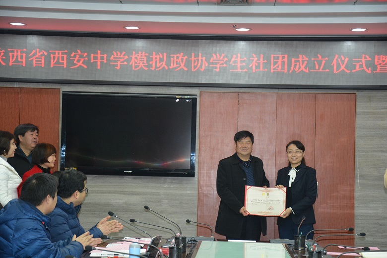 12月10日下午4:10,陕西省西安中学模拟政协学生社团成立仪式暨专题培训会在我校行政西一楼会议室隆重举行。陕西省政协提案委员会副主任刘海萍,陕西省政协委员、陕西律师协会参政议政委员会主任、民革中央青年委员会委员张阳秋,陕西省教育科学研究所政治教研员、陕西省教育学会德育专业学会秘书长段威,陕西省西安中学张克强校长、薛锋副书记、校团李鑫副书记以及东元路教研室主任邓正立、经开一中办公室副主任肖晓锋出席了本次活动。政治学科组全体教师及40名社团学生参加了本次活动。会议由政治学科组组长张春锋主持。