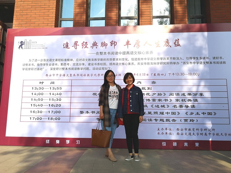 4月18日,由西安市教科所主办的“追寻经典脚印·丰厚人生底蕴——在整本书阅读中提高语文核心素养”主题教研活动在西安交通大学附属中学航天学校召开,我校语文教研组李萍老师、张颖老师参加活动。