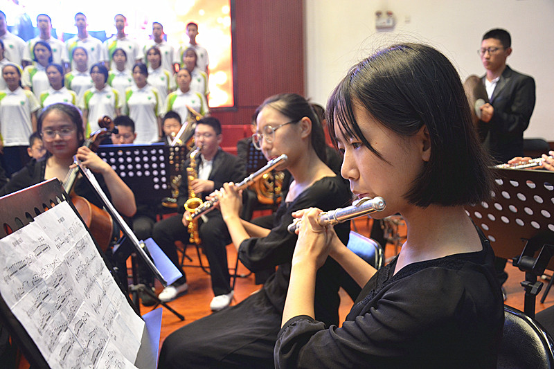 活动在全场师生齐声合唱《歌唱祖国》中隆重开场,场面分外鼓舞人心!校管乐团与合唱团高度配合、完美演绎《我和我的祖国》,场面宏大,优美动听。