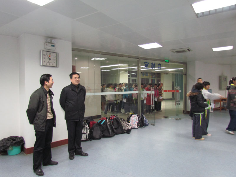 体检采血工作受到了未央区教育局的重视,期间未央区教育局招生办陈沛林主任和王改燕老师前来指导工作,我校张克强校长对他们的到来表示欢迎,未央区招办对我校工作组织严密、到位给予高度评价。