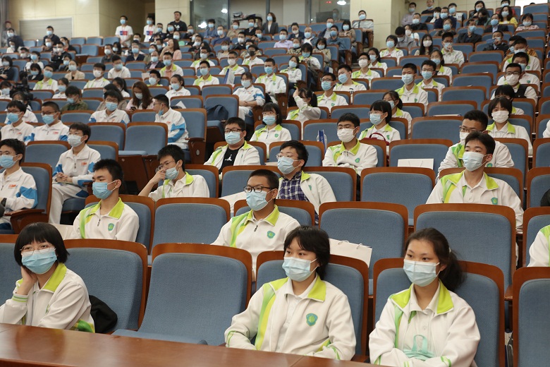 签约仪式后,中国工程院院士段宝岩做了题为《观天巨眼(FAST)与雷达、通信天线》的科普讲座,系统介绍了FAST的设计、论证、建设历程。在提问环节,我校学子就志愿填报、电子信息专业知识、FAST射电望远镜等关心的话题与大学教授进行了互动。