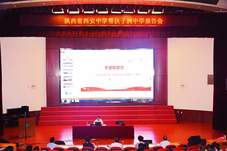 为贯彻落实习近平总书记在全国脱贫攻坚总结表彰大会上的讲话精神,大力弘扬脱贫攻坚精神,及时宣传身边的榜样事迹,助力我校教育帮扶工作更加稳步推进,6月17日下午,校党委特别举办教育帮扶工作主题报告会。西安中学副校长、子洲中学党总支书记、校长雷琪平同志为高一高二全体就教职工做精彩报告。会议由校党委副书记薛锋同志主持。