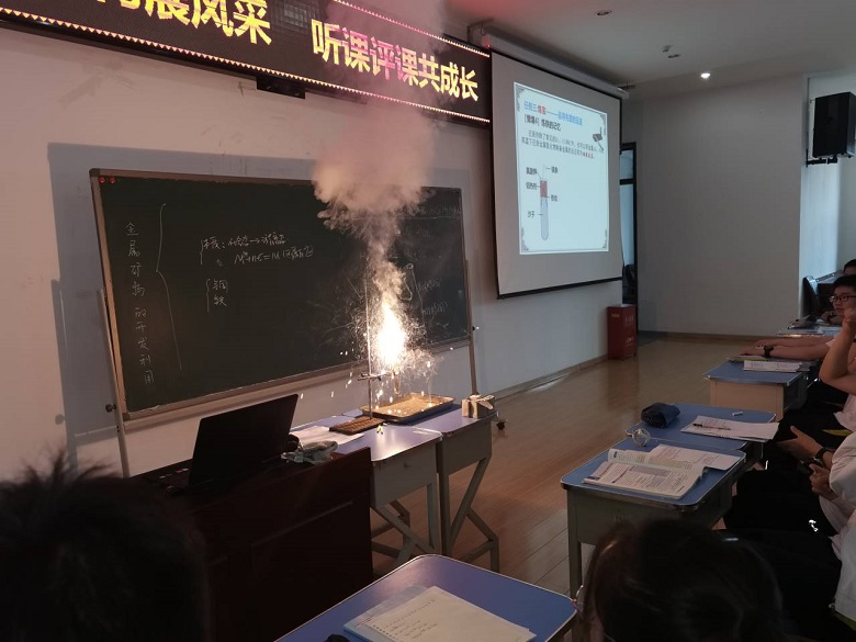 接着,我校化学教师高苗老师从学生熟悉的金属的冶炼引入,引导学生利用所学知识分析铝的冶炼方法,从而归纳出不同金属的冶炼方法与其活泼性密切相关,渗透化学学科思想。在掌握金属的冶炼方法后再向学生渗透金属冶炼过程中对矿物的分离提纯、金属的用途及冶炼过程中所带来的能源、环境等问题,帮助学生树立可持续发展的理念。