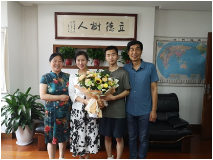 7月28日上午,我校高2021届12班学生胡煜东和他的父母怀着喜悦而激动的心情走进西中校园,在张克强校长办公室向学校赠送一面锦旗,表达他们对学校及所有科任老师尤其是班主任雷元歌老师和语文原雪老师的感恩之情。