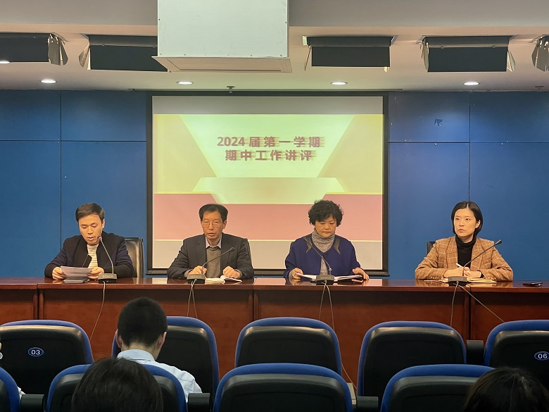 首先刘飞副主任总结了年级前半学期以来的教学工作,并对期中教学成绩进行了反馈。同时,刘主任从教案及作业检查、评教结果、期中考试成绩三方面入手,细致而全面的对本次期中考试进行了讲评。刘主任希望各位老师在今后的工作中加大对学生的管理力度,加强对教学效果的关注,提高课堂和晚自习的效率,扎实做好教学各个环节的工作。