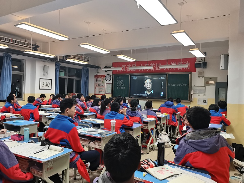 同学们齐聚班级,通过多媒体大屏观看视频。数学学科组所选影片从数学与人的关系出发,介绍数学作为最基础学科对于人类文明进程的意义。通过现实生活中数学的体现,如计时、建筑、音乐、天气预报等,介绍数学的应用。同时,通过对数学家的访谈,了解这些“被数学选中的人”是如何看待数学、看待科学演进的。