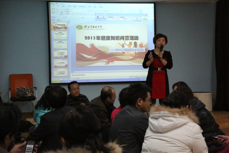 为了传播健康知识,增强广大教师的健康意识、让高三老师在紧张繁忙的工作中多关注自己的健康状态,以饱满充沛的精神状态做好复习备考工作,高三年级部与学校心理发展指导中心于12月26日下午举办了 “2013届迎元旦教师健康知识竞答”活动。