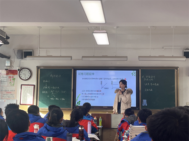 为进一步提升教育教学水平,引导教师探索试卷讲评课的教学模式和方法;帮助学生了解自己的学习状况,分析存在的问题,进一步提高解决问题的能力,在学校的统一安排下,2023年11月16日周四,生物学科组开展期中考试试卷讲评公开课活动。本次活动由王子瞳、贾涵宇两位老师进行授课。