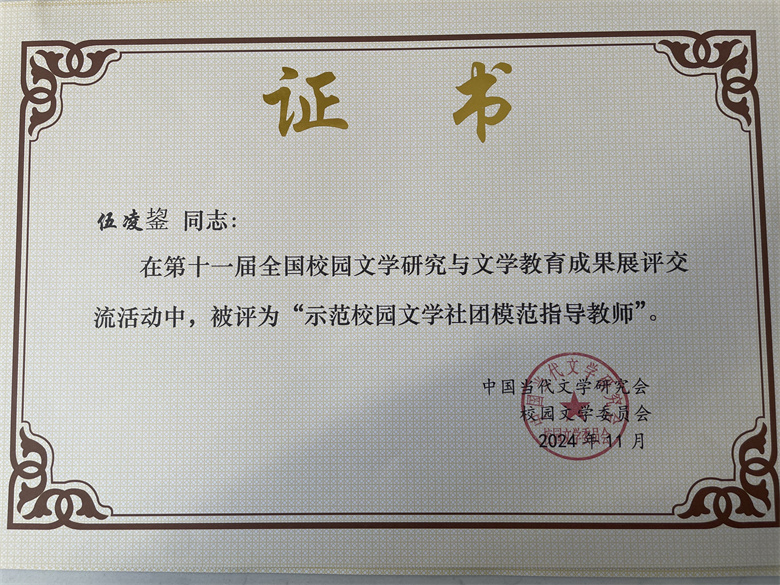 本届会议还举行了全国“示范校园文学社团”评选活动,经大会组委会评审,我校“二月”文学社荣获全国“示范校园文学社团”称号,我校副校长薛党鹏被评为“模范校长”,文学社指导教师原雪被评为“模范主编”、伍凌鋆被评为“社团优秀指导老师”,高2026届1班景雪同学被评为“模范社长”。