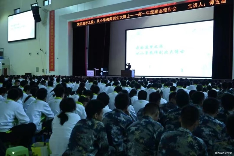 10月17日晚上,北京大学文学博士、北京师范大学教授、著名诗歌评论家谭五昌教授在我校体育馆进行《我的筑梦之旅:从小学教师到北大博士》励志报告会。高一年级近千名学生参加报告会。报告会由高一年级副主任白富东主持。