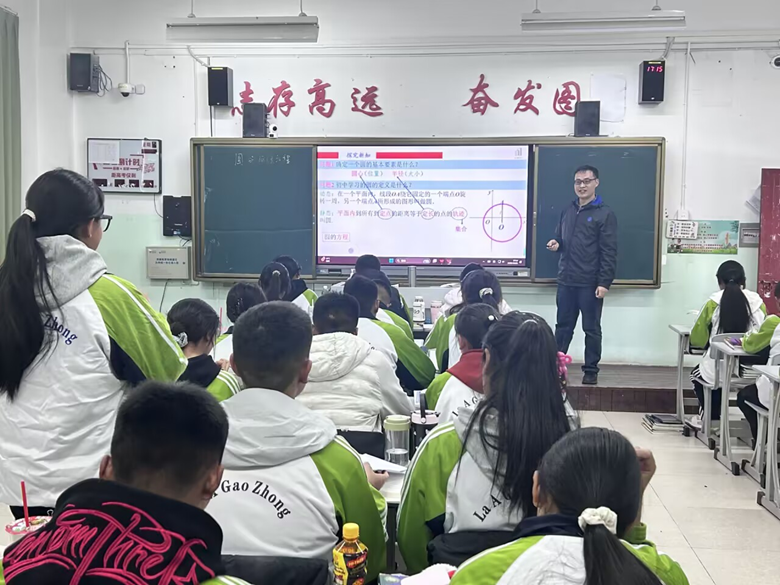 在送教过程中,龚世俊老师还呈现了《圆的标准方程》示范课。通过清晰的讲解和适当的师生互动,展示了以学生为主体的教学理念在课堂中的具体运用,为参与观摩的教师提供了一个可供研讨的教学案例。