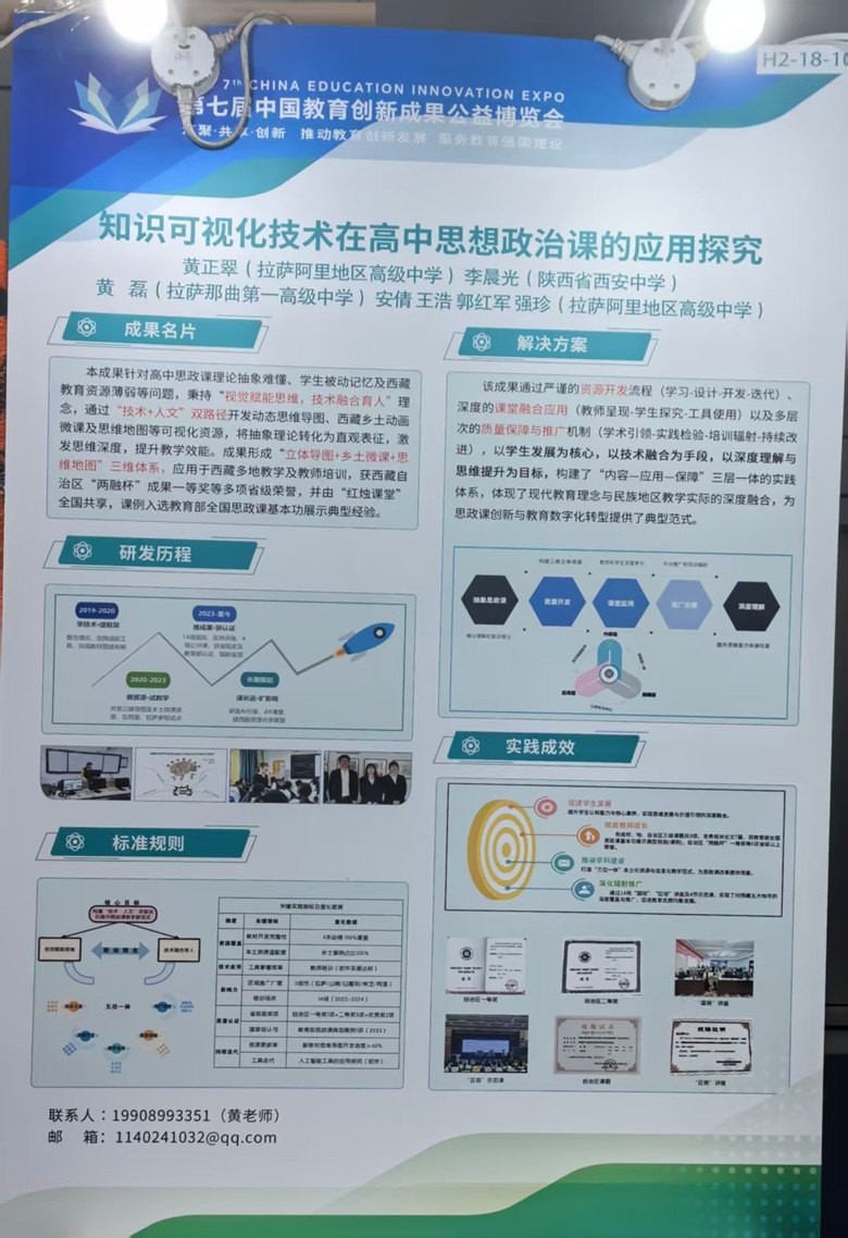 支援西藏没有终点,2022年李晨光援藏归来,他仍持续关注拉萨阿里地区高级中学教师团队的专业发展,在我校后续管理团队的支持下,此成果不断深化,衍生出了西藏自治区课题和阿里地区课题各一项,知识可视化技术成果得到不断发展和丰富,此次获推参加全国教博会,是我校支援西藏教育的一次充分展示,也让全国同行见证了西藏教育发展的西中力量。