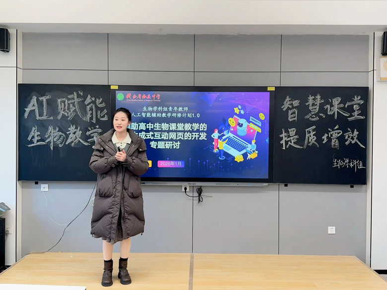 为响应教育部数字化赋能教师发展号召,深化生成式人工智能与生物教学的深度融合,1月15日,西安中学生物学科组在高三年级多功能教室3开展“青年教师人工智能辅助教学研修计划1.0”专题教研活动。生物学科组全体教师齐聚一堂,聚焦AI生成式互动网页开发,共探技术赋能课堂的新路径、新方法。