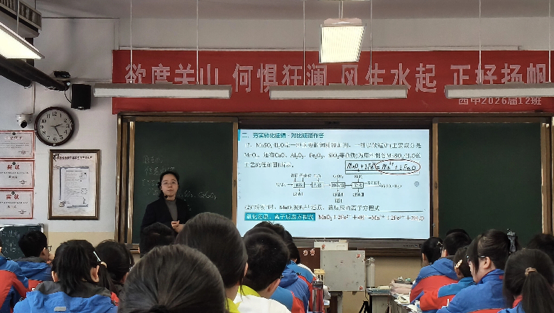 为深化高三化学二轮复习策略,探索科学高效的课堂教学模式,2026年3月24日,西安中学化学组在高三12班及备课组议室开展了以“核心难点突破与分层教学实施”为主题的专题研讨活动。本次活动由任雨晴老师执教复习示范课,焦梦婵老师进行分层教学汇报,化学组全体教师积极参与听评课与研讨。