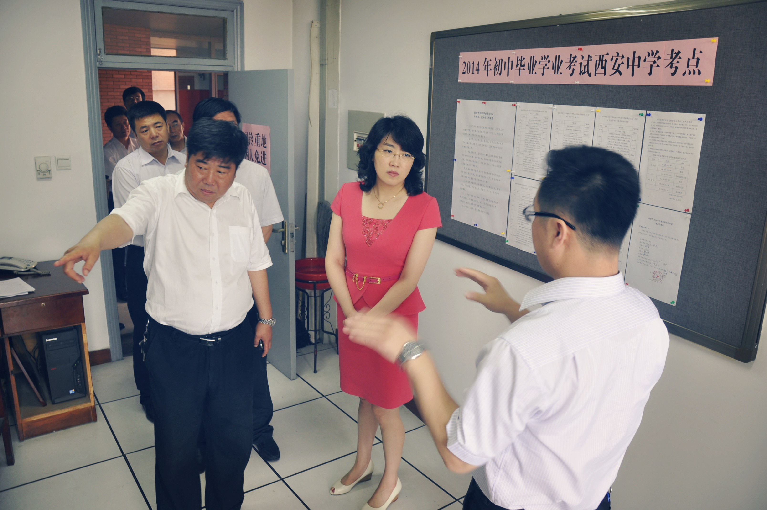为确保2014年全市中考平稳顺利,6月20日上午,西安市政府副市长李婧来到我校就今年中考考点准备工作进行全面检查,市政府副秘书长黄晓华、市教育局、市保密局、市公安局、市卫生局、市无线委及市教育考试中心等部门负责同志陪同。