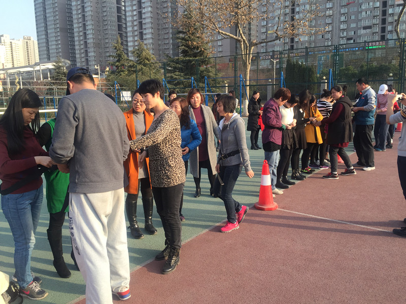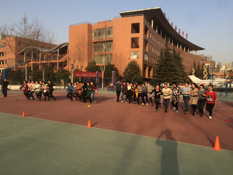 下午5点10分,全级女教师精神抖擞地聚集于校篮球场,要在活动中一展身手。本次活动主要安排了“环环相扣”、“车轮滚滚”、“袋鼠跳”等项目,活动场面热烈而不失秩序,加油声和欢笑声伴随着明媚的阳光洋溢在整片篮球场。高二年级主管校长李文耀副校长和年级部石峰虎、陈昭亮、左宏莉主任等领导也莅临活动现场,给女教师们排兵布阵,加油助威。本次活动得到了第一党支部和摄影协会的大力支持,表示由衷地感谢。