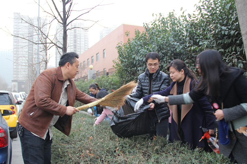 首先校党委樊世杰书记做了动员讲话,他强调净化校园周边环境、创建自然和谐的文明校园,我校教师应身体力行,从小事做起,从美化环境做起,从为学生树立榜样做起;接着,校团委黎建军书记为大家佩戴了“志愿者服务”的徽标,第三党支部书记徐仕岿为大家下发了喷壶、扁铲、手套等简易劳动工具;30余名志愿者老师兵分三路,分别从正门沿路向东西两个方向、以及东门进发,清理沿途公交车站、甬道、电线杆、标识牌上的乱贴乱画和“小广告”,擦洗垃圾桶和公共自行车站,并与周边的环卫工人交流了校园周边的环境卫生问题。经过近一个小时的劳动,志愿者小分队圆满完成了这次清理任务。雷琪平副校长专程在大门口迎接大家劳动归来,并对本次活动作了总结,希望这样的活动要经常搞、坚持搞,以校园为圆心,扩大我校对环境育人方面在周边区域的美誉度和影响力。
