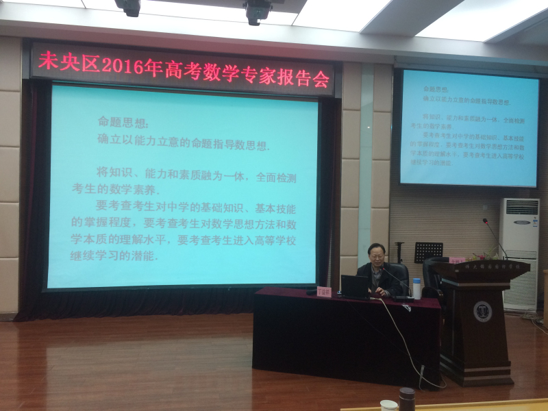 2016年3月17日,未央区2016年高考专家报告会(数学组)在陕西师范大学锦园小学报告厅举行。未央区全体高三数学教师及部分外区县数学教师100余人聆听了报告会。我校数学教师宋心茹、杜薇、赵琳、高欢、武斌、郑欣代表高三数学备课组参会。