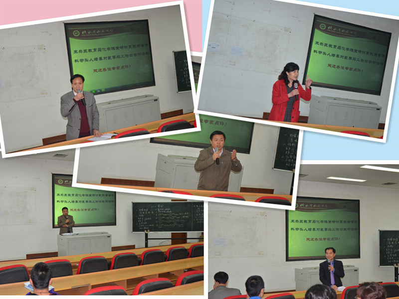 研讨环节,西安市89中特级教师董啸老师首先对三位老师的教学进行了全面的点评,他认为:王继璋老师实验设计创新,课堂教学以学生为主体;马军老师语言幽默、理论联系实际,同时还注重学习方法的指导,符合学生的认知规律;曾文静老师教学思路清晰,实验设计巧妙,也非常注重学生的学法指导。随后,我校高二化学备课组组长张根宝老师也进行了点评,张老师认为三位老师的课堂教学优点颇多,如王继璋老师的教学学科特征突出、理论高度高、新旧知识联系紧密;马军老师课堂气氛轻松、注重对学生的人文关怀、注重学生对信息的获取与整合;曾文静老师备课细心、设计用心、师生关系融洽。此外,杨凌中学史老师也就三位老师的课进行了点评:王继璋老师大胆将实验交给学生动手完成,用问题和探究带着整个课堂的节奏;马军老师能够极大地调动学生,引课到位;曾文静老师实验动作、语言都非常规范。最后我校化学学科组组长秦才玉老师也进行了点评,秦老师认为三位老师的导课都很自然、流畅,涉及到了生活的方方面面,课堂体现了学生的主体地位,重视学科思维方法的培养,总之,三位老师的展示课都异常精彩。