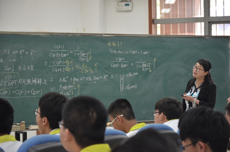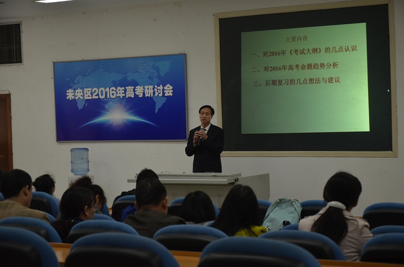 2016年4月12日下午14:30-17:00未央区教育局在我校进行高考复课研讨会,研讨会由未央区化学教研员冯俊玲老师主持,共有两个环节,第一个环节由省级教学能手,陕西省西安中学青研会会长马云云老师展示了“水溶液中粒子问题”的示范课,马云云老师通过例题引导学生分析归纳出“弱电解质溶液中相关粒子浓度的变化”、“盐溶液中相关粒子浓度的变化”、“混合溶液中各粒子浓度大小关系”、“不同溶液中同一粒子浓度大小的比较”等学生容易出错的问题,整个教学环节以学生为主体,教师为主导,受到参会老师的一致好评;第二个环节,我校化学学科组长秦才玉老师做了题为“考前50天,化学怎么办”的专题报告,主要内容为“对2016年考试大纲的几点认识”、“对2016年命题趋势的分析”、“后期复习的几点想法与建议”。秦老师着重分析了2016年考试大纲说明中题型示例的变化,以及近年来高考试题对学生学习能力考查典型题,关于命题趋势他强调要加强以课本为背景材料的高考试题研究,让学生反复练习题型示例中的每一个题目,通过变形的方式再做近年来的高考试题。他在建议中指出一要以考试大纲为线索梳理课本知识,二要以往年高考试题为线索整理化学知识,三以做过的错题为线索提升知识的运用能力。秦老师的报告也得到与会老师的高度认可。