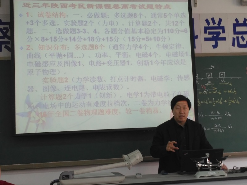 研讨活动主要分两部分进行,第一部分由谢欣哲老师主讲,主要讲述了从高考阅卷中得到的对于高三教学和学生备考复习的启发。对在场的所有老师,尤其是没有参加过高考阅卷的青年教师有很大的启示。第二部分由张旭日老师主讲,主要讲述了我校高2017届物理备课组在二轮复习中的进度安排、练考安排、主要做法等,供物理组学习、讨论、交流、修改。
