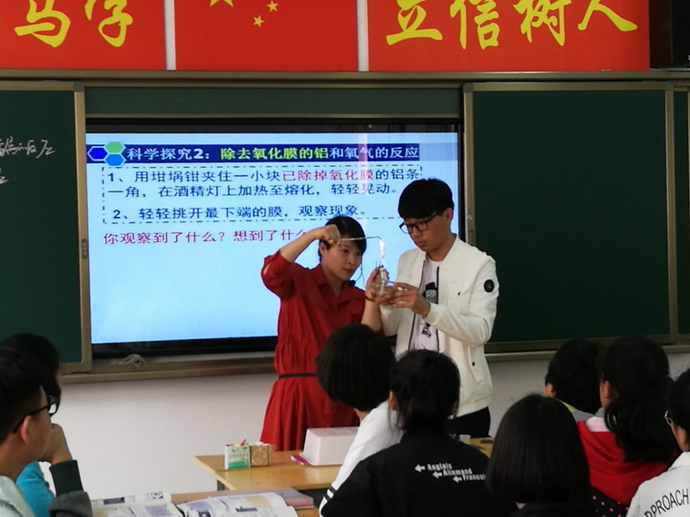 本次活动旨在通过展示2017年西安市新课程优质课评选活动中涌现的优秀案例,来发挥优质课案例的示范和引领作用,借助开展课堂教学研讨与交流活动,从而引导教师深入研究与科学实践有效教学的能力。曾文静老师在2017年西安市新课程优质课评选活动中,获得了一等奖第一名的优异成绩,本次曾老师受邀前往户县电厂中学展示了《金属与非金属的反应》一课。曾老师大胆创新,巧妙设计,对教材进行重新整合,对实验进行优化设计,获得了听课老师的一致好评。