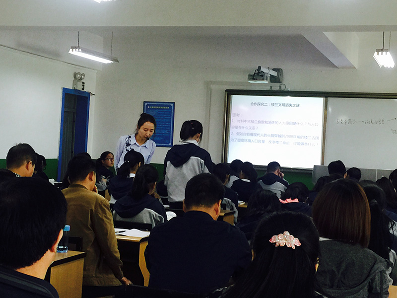 本次活动是2017年西安市新课程优质课评选系列活动之一,主要是获得一等奖的优质课案例进行巡回展示,一方面加强各区县之间的教研交流,另一方面促进教师的专业成长和发展。邢莹莹老师展示课题为《人口合理容量》。这节课,邢老师大胆整合教材、创新设计课堂活动,无论沉稳大气的教学风格,还是不拘泥的教学设计,都给参会老师带来新的视听感受,受到了与会专家与教师的一致好评。