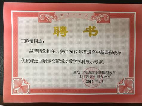 数学组王晓溪老师受邀参加西安市新课程优质课巡回展示交流活动