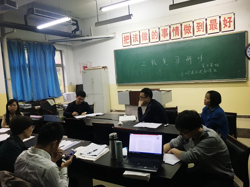2017年5月3日,历史组全体老师于高三(29)班听评李静老师公开课《突破瓶颈子,冲出高原区——再说高考41题答题策略》一课,课后对高三老师的公开课进行了评课,并对高三二轮复习的具体安排进行了有效探讨。