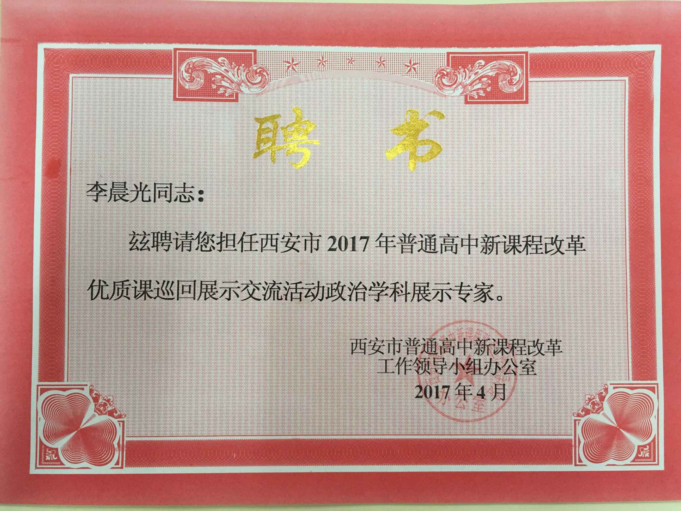根据西安市课改办安排,我校政治学科组李晨光老师受邀于4月24日和5月2日,分别前往周至县周至中学、临潼区华清中学参加“西安市教育局组织的全市普通高中新课程优质课巡回展示交流活动”,参与本次活动的还有西安市课改办主任张连营、西安市教科所陈海兰老师、周至县与临潼区教研员和各学校教师代表,本次活动是西安市新课程优质课评选系列活动之一,作为一等奖第一名的优质课案例在两地进行巡回展示。