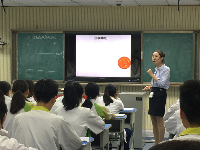 邢老师在总结对流层大气的受热过程时,并没有采用单纯的讲授法,而是不断的让学生通过对实验的思考来一步步的完成示意图的绘制,体现了以学生为主体的教学考量。在后边的知识应用环节,邢老师展示了大量新鲜生动的案例来复习巩固所学的知识,达到了很好的学以致用的目的,同时也实践着教学生对生活有用的地理的理念。
