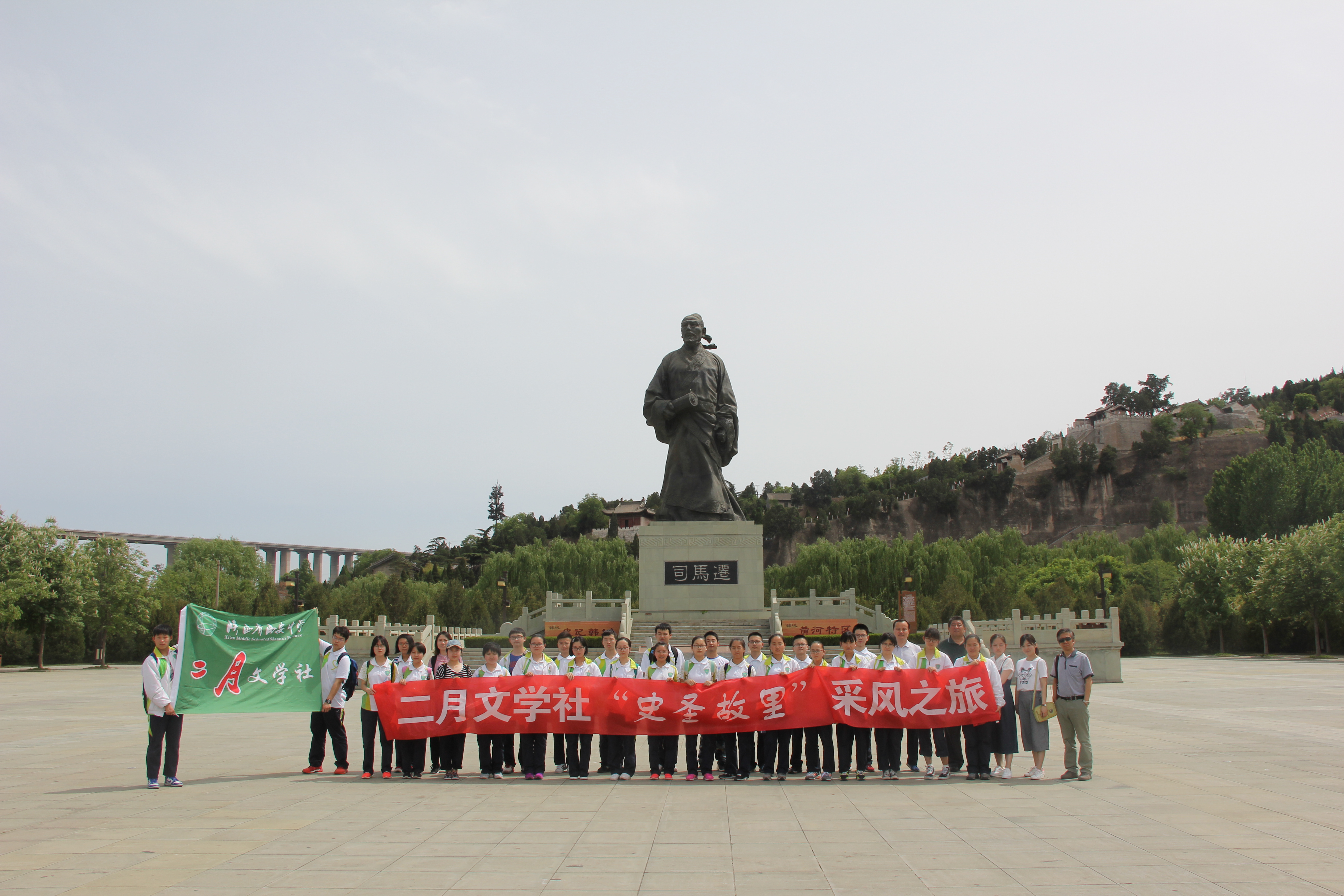 五月十三日,迎着五月的朝阳,“二月”文学社师生一行从西中出发,赴“史圣”司马迁故里——韩城,开展文学采风活动。大巴车一路沿着西禹高速前行,沿路美景入目成色,山川良田逶迤起伏、芝川大桥依山傍沟、景观林带秀雅可爱,尤其是芝水之上,依崖就势而建的司马迁祠绰约可见,引得文学社同学纷纷瞩目。