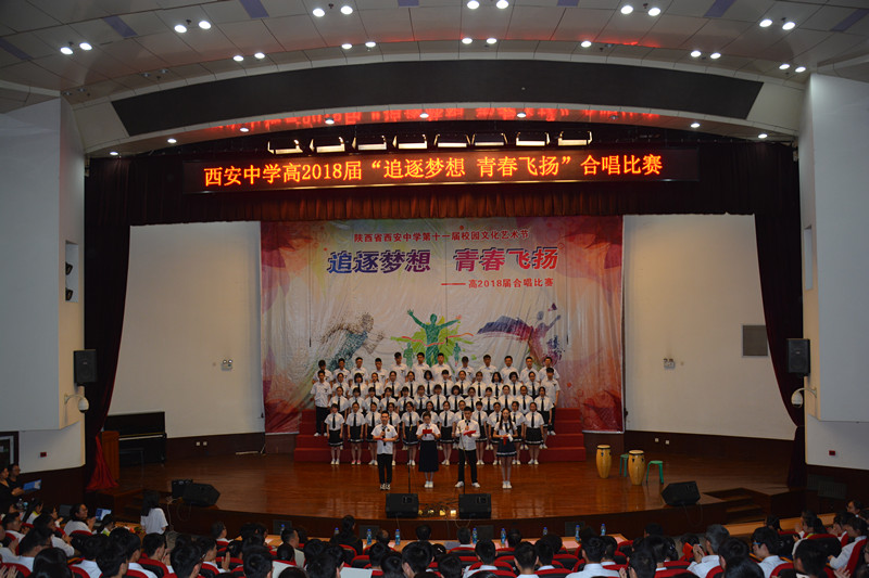 为丰富学生的校园文化生活,激发学生爱校情怀,5月11日和12日晚,高2018届年级部举办了主题为“追逐梦想,青春飞扬”的合唱比赛。全年级学生齐聚艺术中心,学校张克强校长、李文耀副校长、薛锋副校长、雷琪平副校长等领导均莅临现场,观看了本次演出。