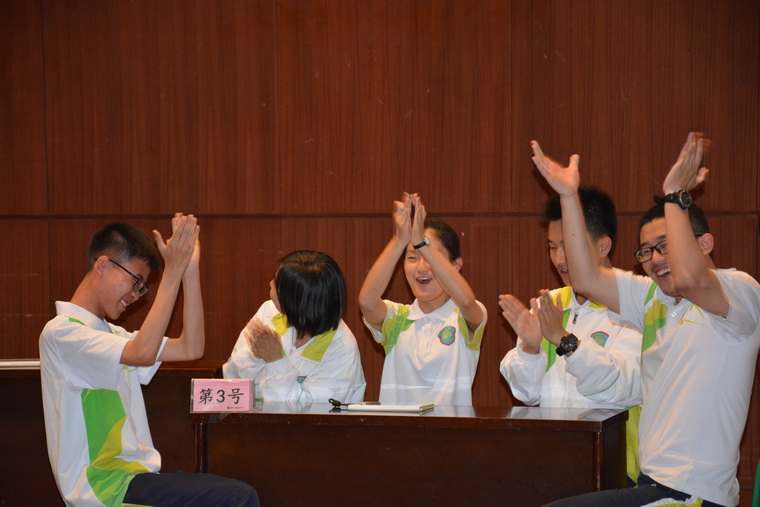 决赛中高二2班与高二文科1班得分相同,进入激烈的加时赛。加时赛采取突然死亡法,先拼错单词的班级淘汰。加时赛进行时,两个班级势均力敌,观众席中不时响起阵阵掌声,最终文科1班取得胜利,成为整场比赛的总冠军。