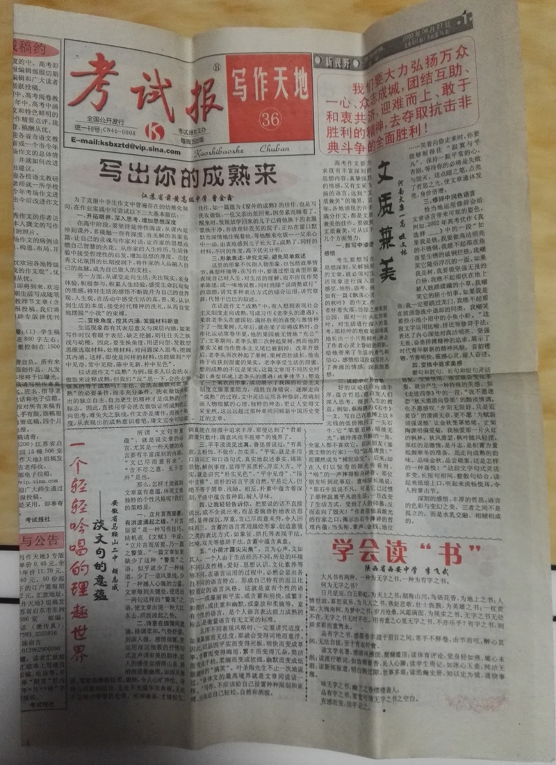 (载于2003年6月27日《考试报·写作天地》)