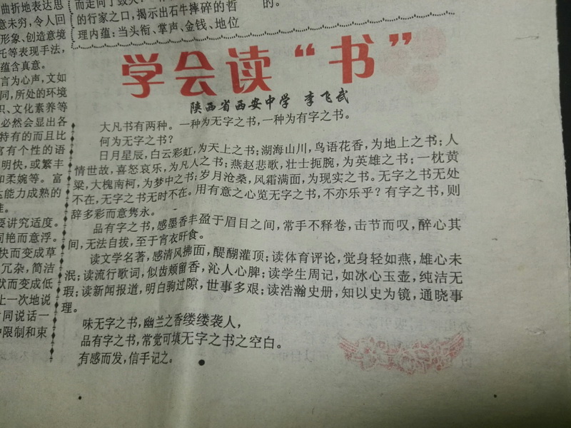 近日有读者发现我校教师李飞武于2003年发表的一篇文章与今年浙江高考作文题非常神似,展现了我校积极建设“书香校园”,营造、浓厚读书氛围的有效成果,同时彰显了我校教师积极思考、认真探究、卓越进取的一面,现将其具体内容展示如下: