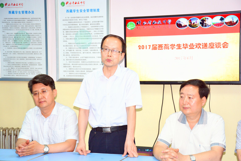 我校西藏学生虽然只是少数,但对他们的关心、教育和帮助离不开信息中心的认真负责,离不开学校各处室、年级部以及班主任、任课老师的密切配合,正是有这样一个优秀的团队,才确保了西藏学生在我校的健康成长和学习进步。为此,薛锋副校长代表学校领导班子特别感谢信息中心以及所有为西藏学生付出过爱心和辛苦的教职工同志们,也感谢家长们对西安中学的信任和支持,感谢同学们三年来的勤奋努力。薛校长真诚地希望同学们要感恩父母,报答父母的养育之恩;要感谢国家给予西藏生的特殊关怀和照顾;要有积极进取心,不断开阔自己的视野;要追求卓越,努力成为建设西藏美好未来的优秀人才。