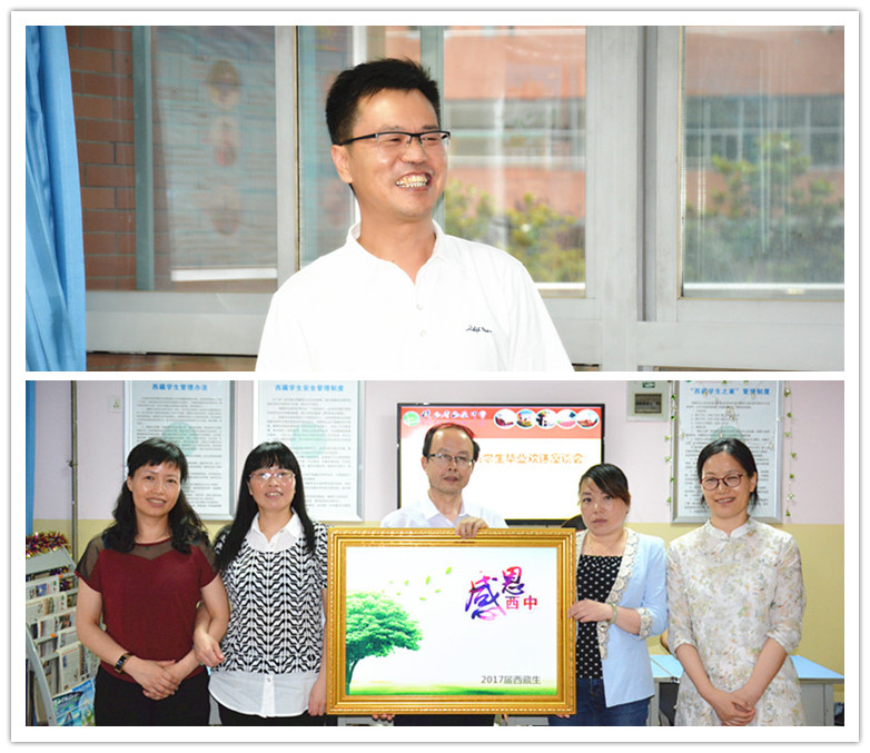 陶昱辰的爸爸代表家长表达了他们对学校的感谢和对孩子们的祝福,几位妈妈给学校赠送了毕业礼物,“感恩西中”几个字表达了他们真切的心声。
