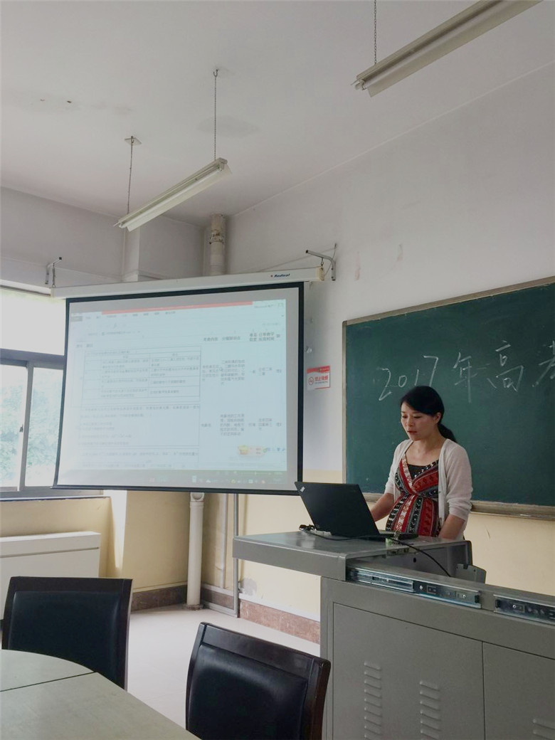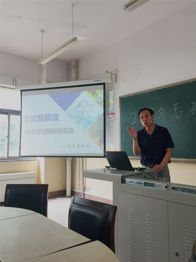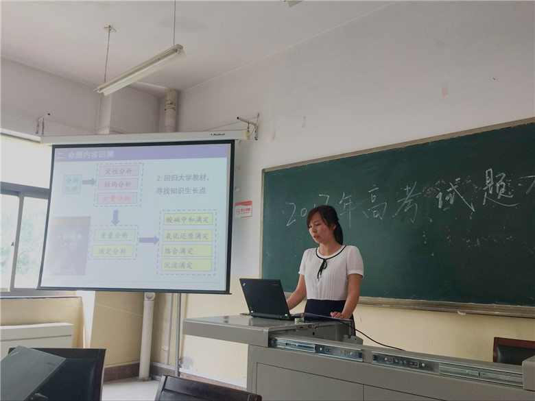 2017年6月13日下午,化学学科组全体教师利用集体备课时间在高一集体备课室开展了“2017年高考试题研讨”活动。研讨活动由化学学科组组长秦才玉老师主持,分别由高2018届化学备课组马文哲、苟莉莉以及高2019届化学备课组曾文静老师做了高考总结报告。